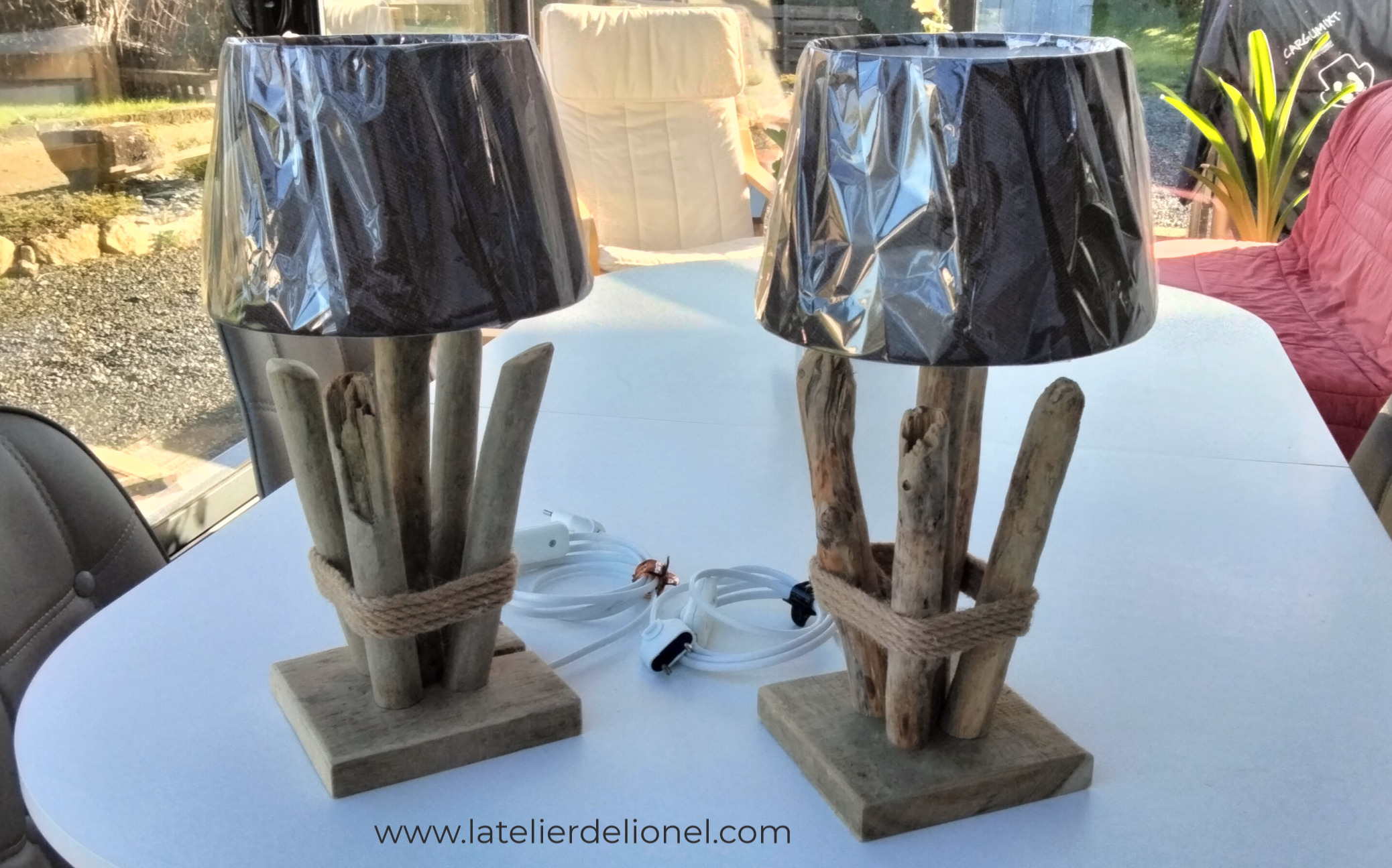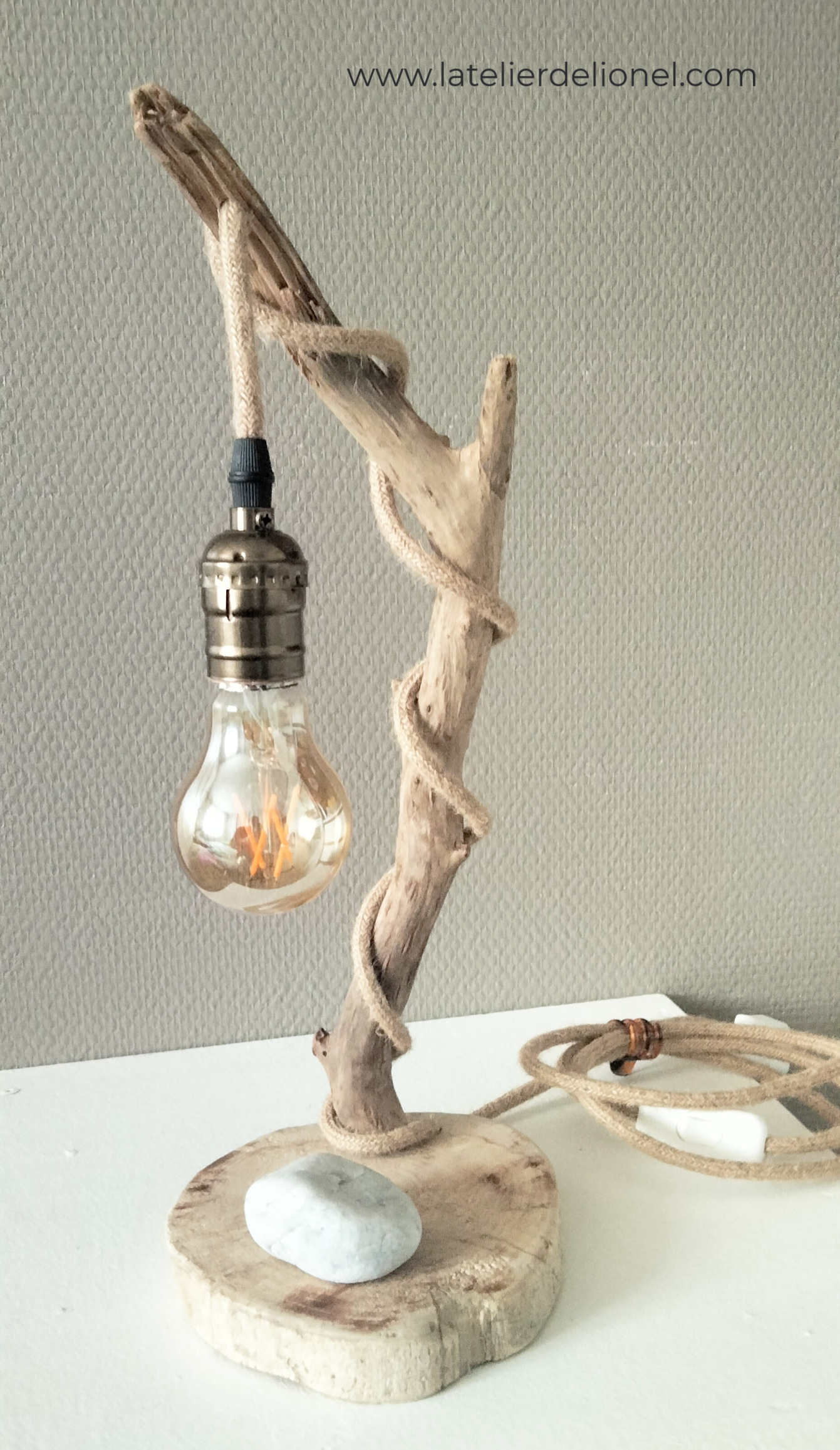 Lampe en bois flotté avec variateur sensitif