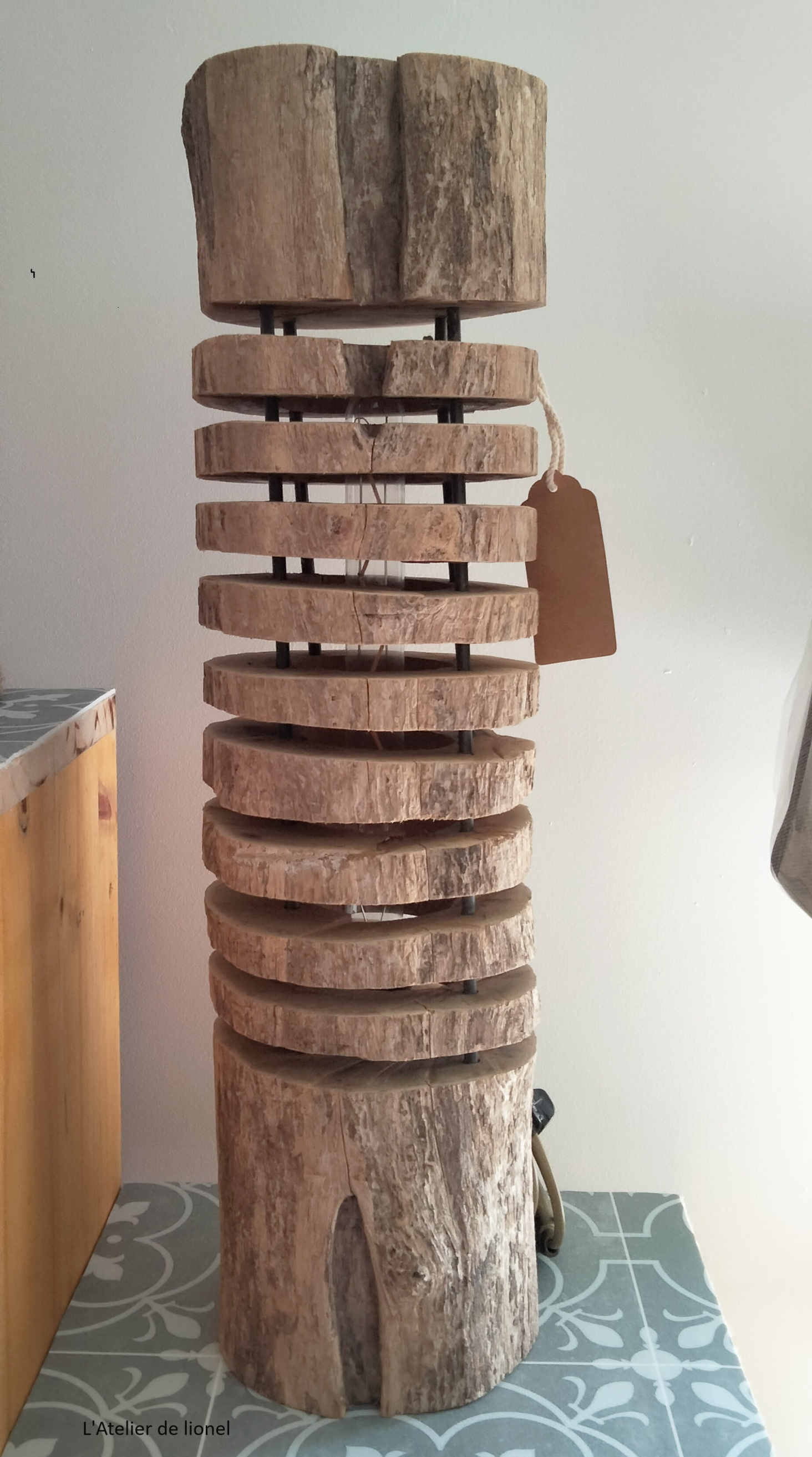 Lampe en bois flotté avec variateur sensitif