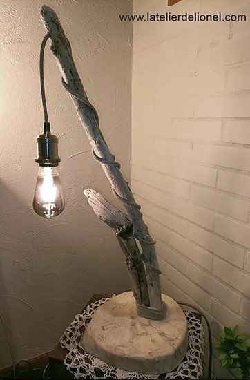 Lampe en bois flotté avec variateur sensitif